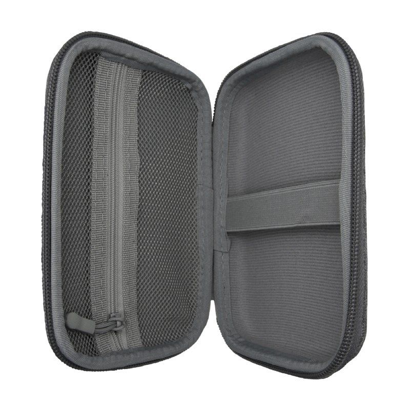 El compartimento interior del estuche tiene una red de malla que permite organizar de manera adecuada los cables y otros accesorios que se utilicen junto con el disco duro portátil. El cierre de cremallera de alta calidad ofrece una protección total y tranquilidad, ya que asegura que el disco duro esté seguro dentro del estuche.