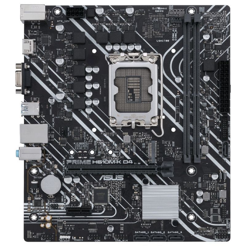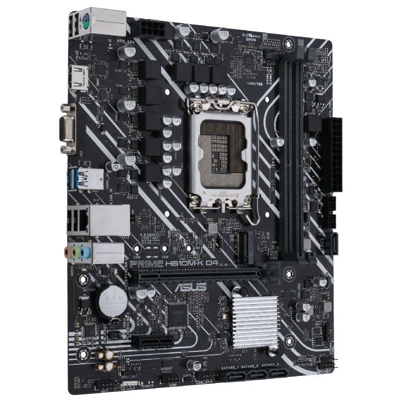 - ASUS Prime H610M-K D4: Placa base micro-ATX Intel® H610 (LGA 1700) con DDR4, PCIe 4.0, ranura M.2, Realtek 1 Gb Ethernet, HDMI®, D-Sub, puertos USB 3.2 Gen. 1, SATA 6 Gbps, conectores COM y RGB